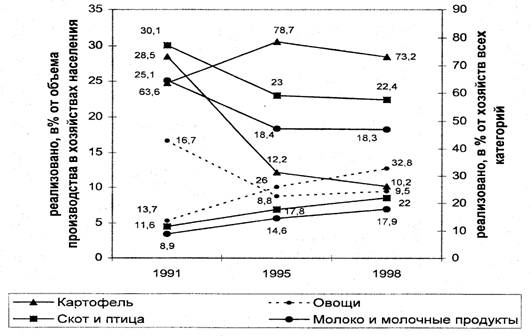 Рисунок 12. Товарность сельскохозяйственного производства хозяйств населения и ее роль в общем объеме реализации